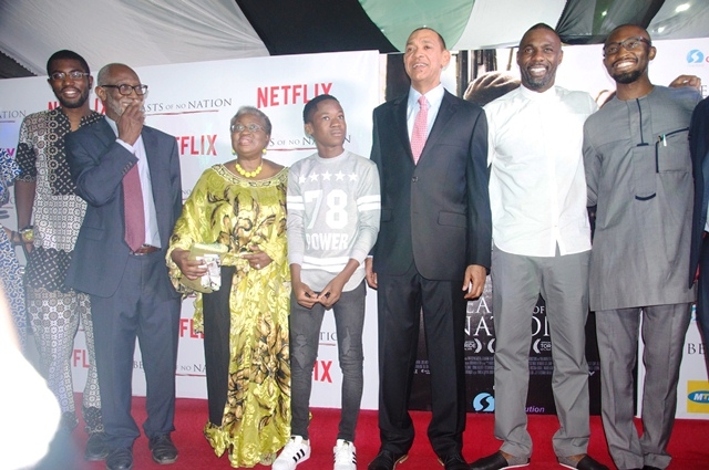 The Lagos Premiere of the much acclaimed movie ‘Beast Of No Nation’ took place at The Silverbird Galleria in Lagos on Saturday 12th of  December. The movie which was adapted from a novel by Nigerian Uzodima Iweala was adapted for screen and directed by Cary Fukunaga and starred Idris Elba and child actor Abraham Attah among others.