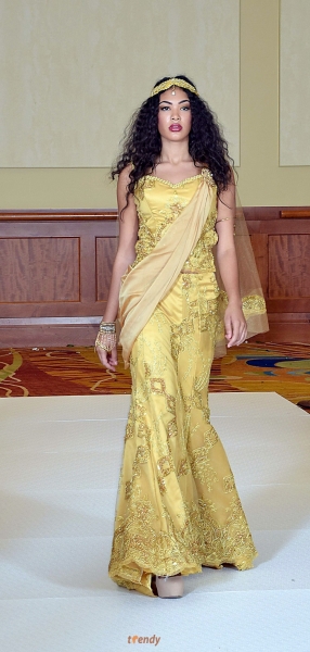 TeKay Designs signature ‘Queen of the Brides’ collection was recently featured at the recently hosted Houston Fashion Week. As part of the Spring 2015 release, the label featured embellished gowns with cathedral veils and headpieces representing several European and Egyptian queens in their signature white and silver, ivory and gold colors.